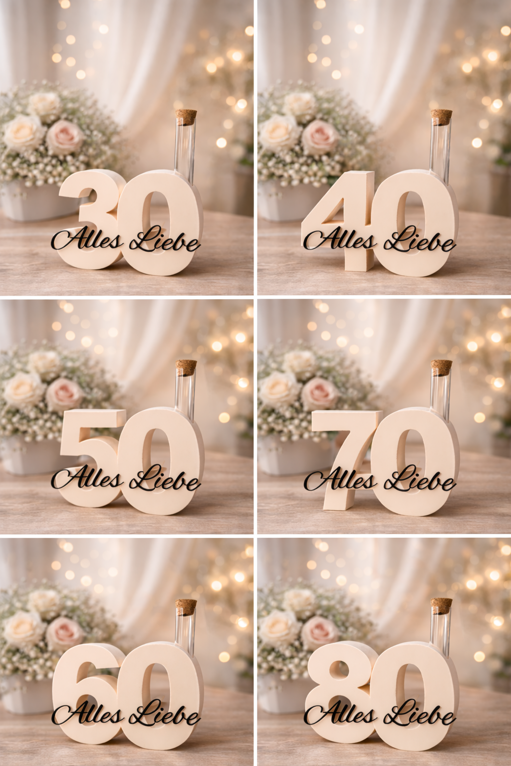 Die Geburtstagszahlen sind wahlweise mit oder ohne Reagenzglas erhältlich. Im Reagenzglas finden kleine Blumen, Trockenblumen oder auch ein paar Süßigkeiten ihren Platz und machen das Geschenk noch persönlicher.