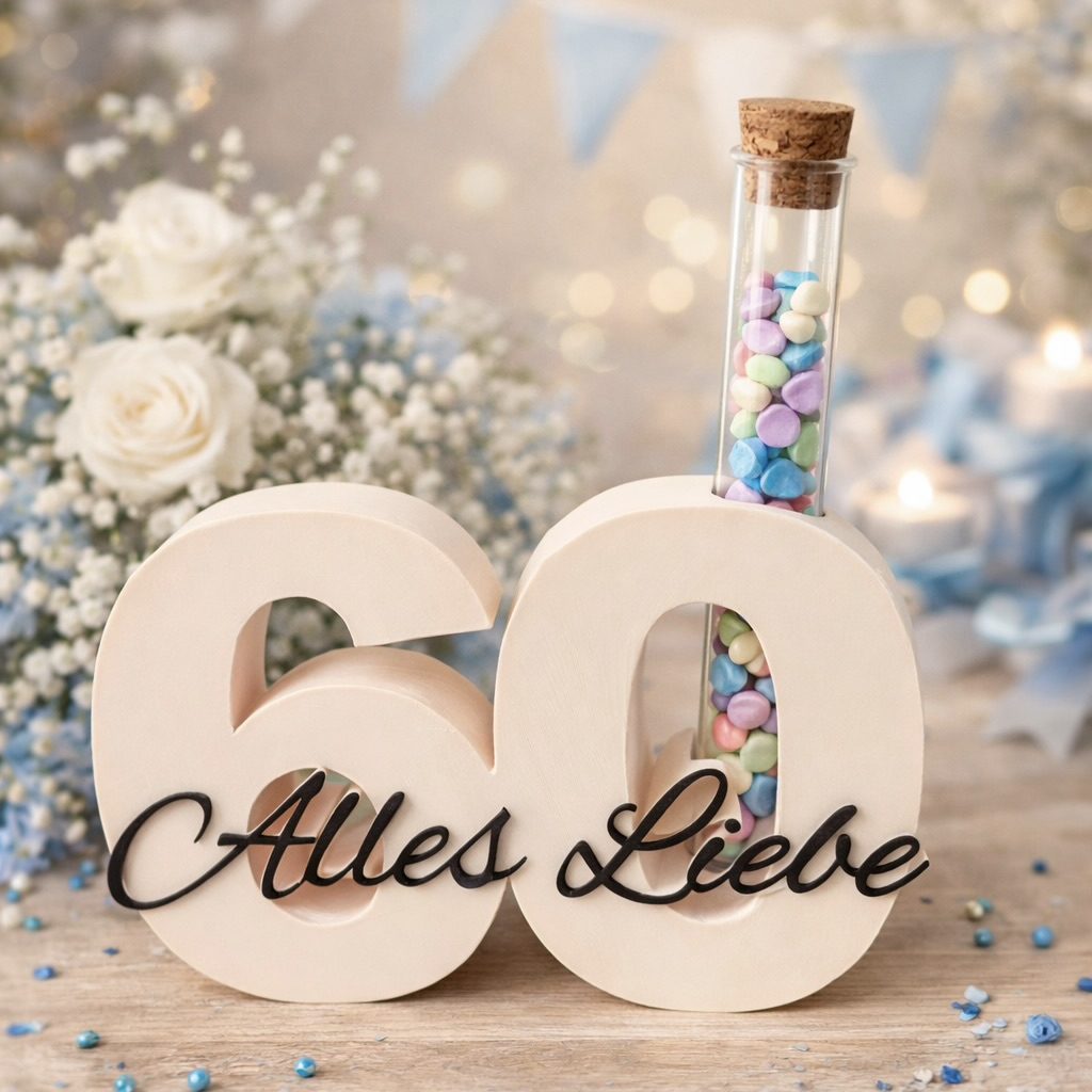 Jede Geburtstagszahl wird individuell im 3D-Druck gefertigt und ist damit ein kleines Unikat.